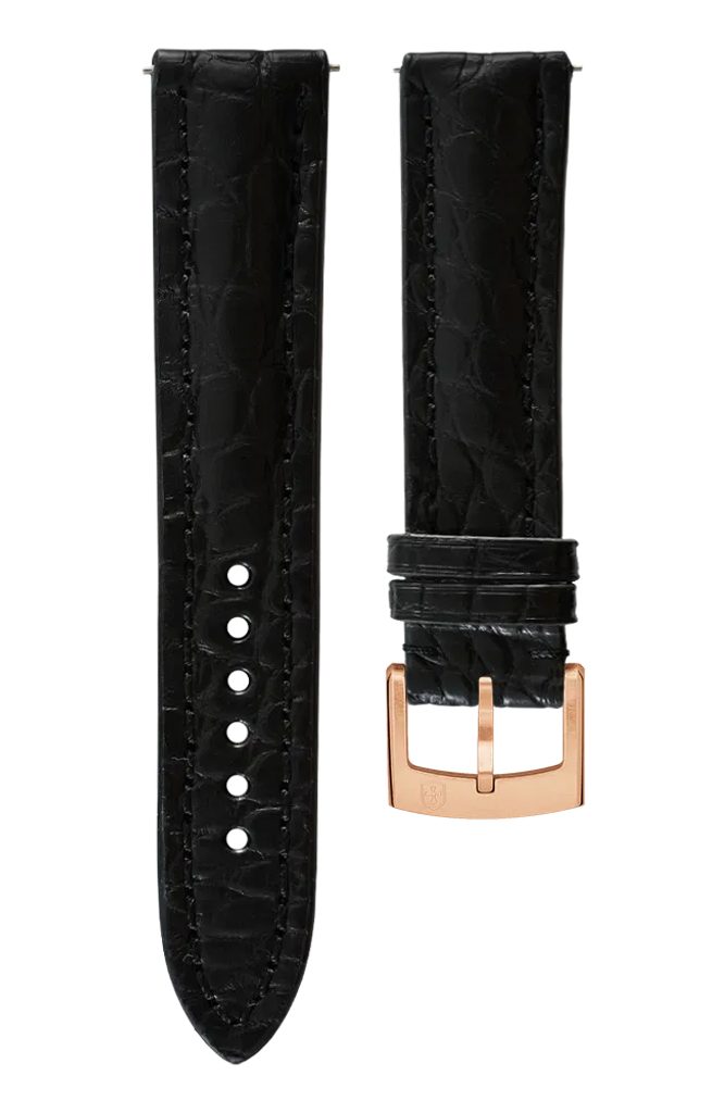 Čierny kožený remienok Biatec z pravej krokodílej kože s čiernym prešívaním je luxusným doplnkom pre vaše hodinky Biatec. Môže sa tiež pochváliť dobrou pružnosťou, ktorá zaručuje vysoký komfort pri nosení.