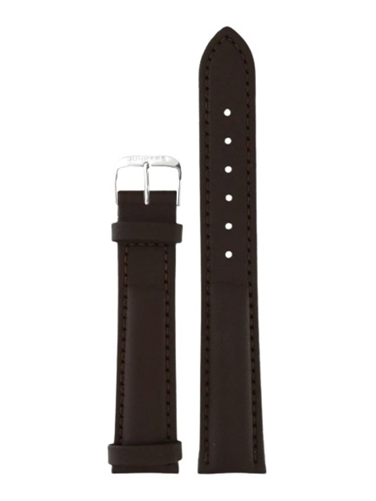 Originálny remienok Junkers so šírkou 20 mm je vyrobený z tmavohnedej kože s hladkým povrchom a farebne zladeným prešívaním.