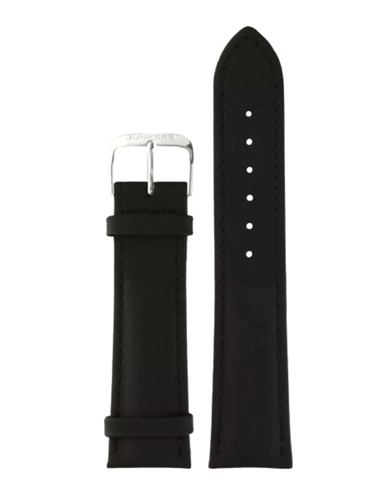 Originálny remienok Junkers v čiernej farbe, široký 22 mm. Je vyrobená z teľacej kože a doplnená farebne zladeným švom.
