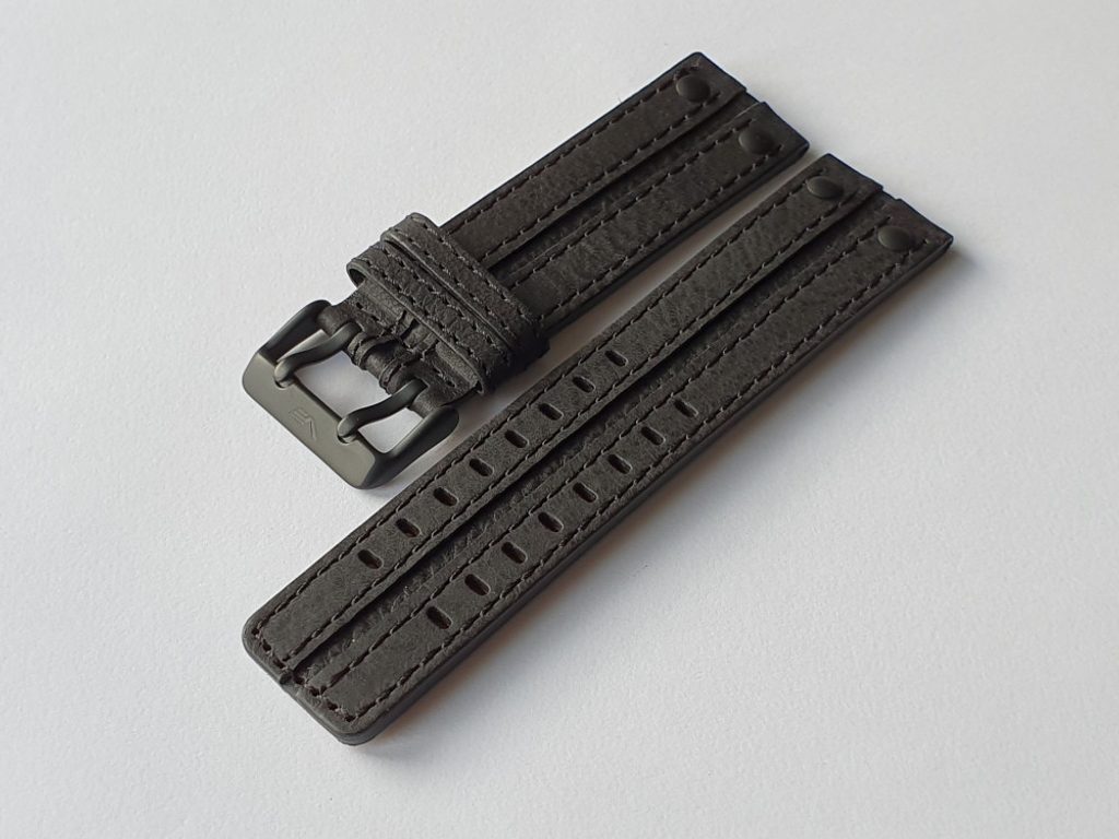 Originálny kožený remienok Vostok Europe pre modelovú radu Expedition North Pole-1. Remienok je vyrobený z 24 mm širokej kože, prešitý čiernou niťou a s čiernymi nitmi.