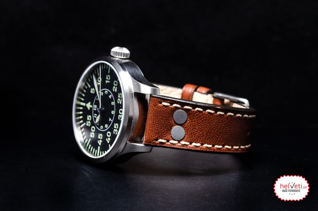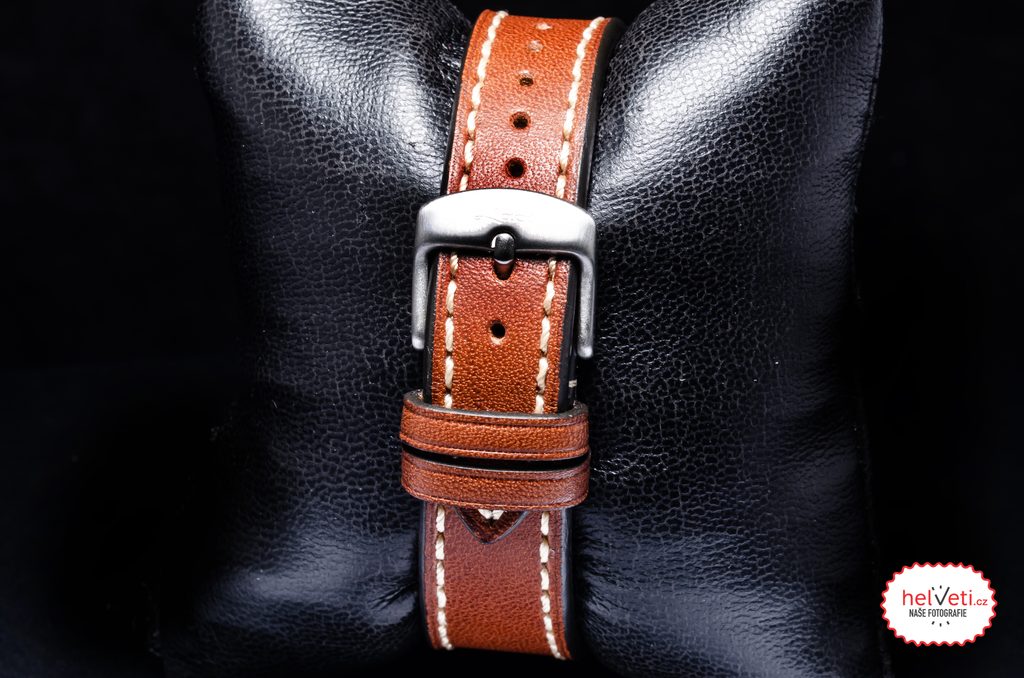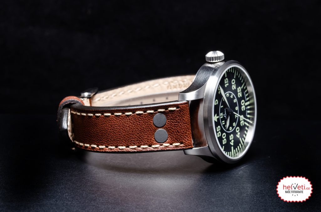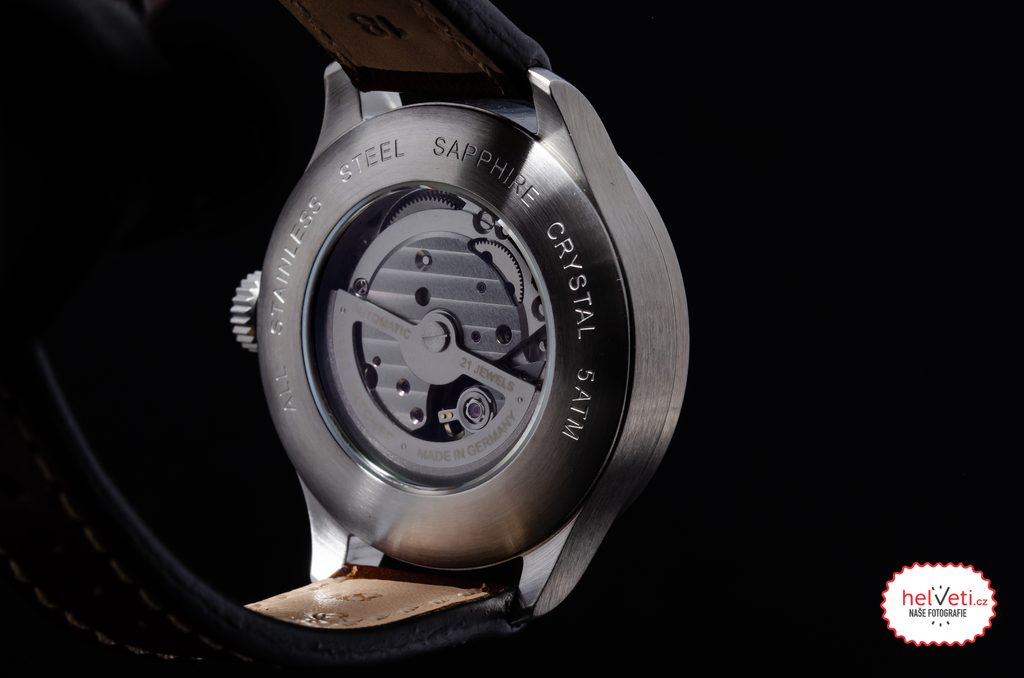 Oceľové puzdro hodiniek Laco Flieger Aachen 39 dopĺňa hnedý kožený remienok s kontrastným bielym prešívaním a výraznými nitmi. Poháňa ich mechanický strojček s automatickým náťahom Laco 21 (základ Miyota 821A), ktorý ponúka rezervu chodu približne 42 hodín, funkciu stop-sekúnd pri nastavovaní času (hacking) a možnosť manuálneho naťahovania. Mnohých poteší možnosť pozorovať strojček cez priehľadné vieko so zafírovým sklíčkom. Vodotesnosť týchto hodiniek je 50 m (5 ATM), takže zvládnu aj plávanie. Priemer puzdra je 39 mm, dĺžka (od nožky k nožce) je 46,5 mm, takže hodinky dobre sedia na väčšine mužských zápästí.