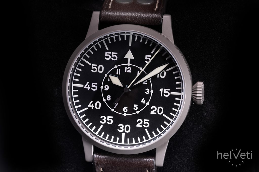 Medzi klasické charakteristické znaky pilotných hodiniek Laco Dortmund patria výrazné a ľahko čitateľné ručičky a indexy na hodinových pozíciách a veľká korunka, ktorá sa ľahko ovláda aj v rukaviciach. Dokonale čistý ciferník B chráni oblúkové zafírové sklíčko s vnútornou antireflexnou vrstvou a vysokou odolnosťou proti poškriabaniu. Ciferník B-Uhr typu B má minútovú stupnicu vytlačenú po obvode ciferníka so šípkou na 12. hodine na rýchlu orientáciu pre letcov a hodinovú stupnicu vytlačenú na vnútornom kruhu. Ikonický ciferník je vyobrazený bez loga ako na predlohe. Lepšiu čitateľnosť za zhoršených svetelných podmienok zabezpečuje luminiscencia umiestnená na ručičkách, čísliciach a indexoch. Ručičky hodiniek sú termálne modré.