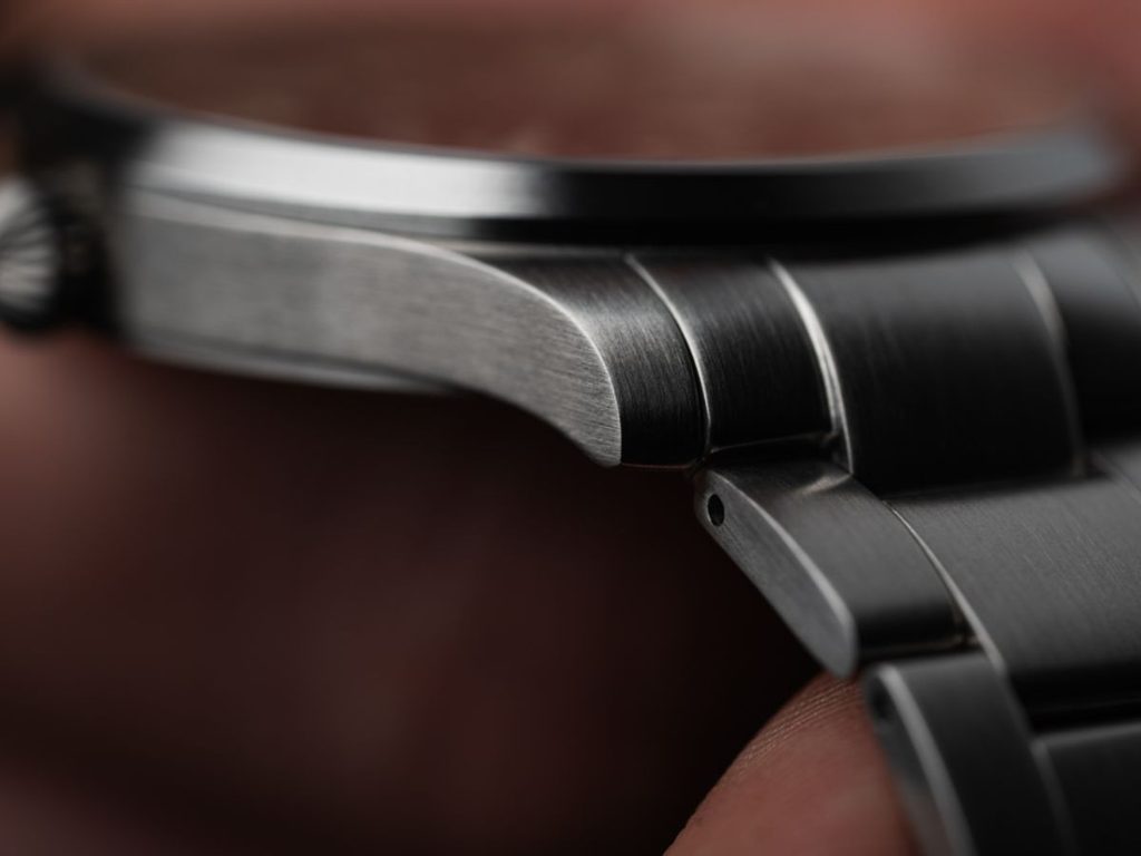 Oceľové puzdro hodiniek Laco Flieger Genf.2.D 40 MB dopĺňa článkový oceľový náramok zakončený skladacou sponou s bočným otváraním. Náramok je rovnako ako puzdro jemne brúsený. Hodinky sú alternatívou k mechanickým modelom, v tomto prípade poháňaným batériovým strojčekom Ronda 505 s funkciou dátumu na pozícii 6 hodín, ktorá zaisťuje vysokú presnosť chodu za každých okolností. Vodotesnosť týchto hodiniek je 50 m ( 5 ATM), takže zvládnu kontakt s vodou pri umývaní rúk. S priemerom puzdra 40 mm, dĺžkou (od ucha k uchu) 47,5 mm a výškou len 9 mm hodinky dobre sedia na väčšine pánskych zápästí.