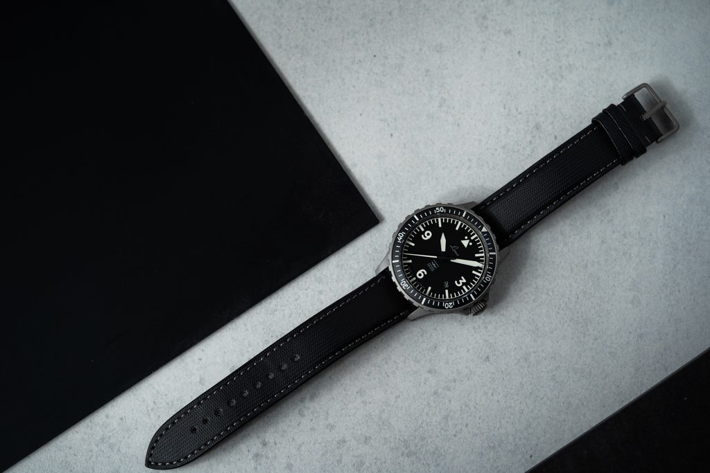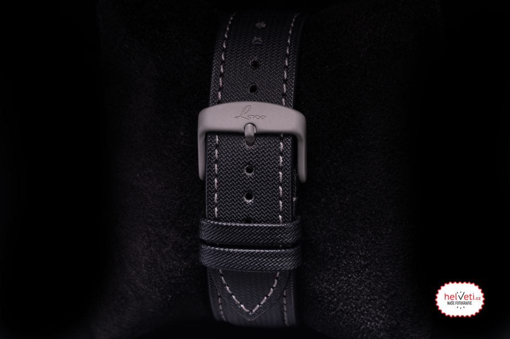 Pieskované oceľové puzdro hodiniek Laco Hamburg DIN 8330 dopĺňa čierny vodotesný remienok Nytech. Poháňa ich mechanický strojček s automatickým náťahom Laco 200 (vychádza z modelu Sellita SW200 Top - testovaný v 5 polohách, presnosť +/- 8 s/deň) s rezervou chodu približne 38 hodín. Strojček s frekvenciou 28800 polofrekvencií za hodinu ponúka možnosť naťahovania korunkou, funkciu zastavenia sekundovej ručičky pri nastavovaní času(hacking), dátum na pozícii 4 hodín. Mnohých poteší celozávitový ciferník s reliéfnym vyobrazením lietadla. Vodotesnosť týchto hodiniek je 200 m ( 20 ATM), ktorú podporuje skrutkovacia korunka. Priemer puzdra je 43,5 mm, takže hodinky dobre padnú na väčšinu pánskych zápästí.