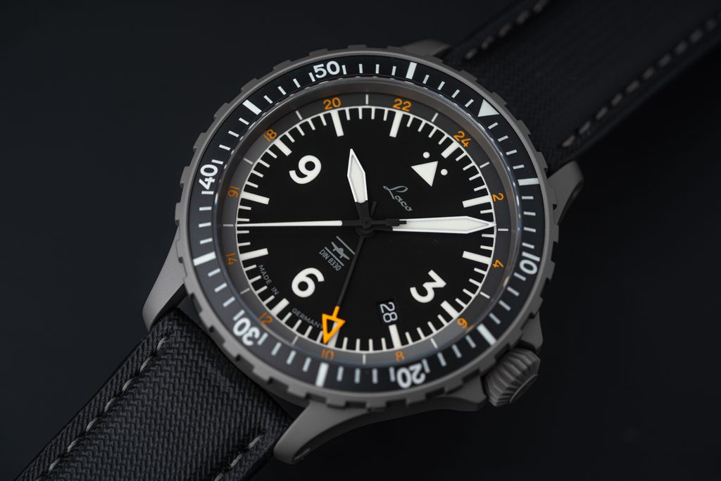 Nemecké hodinky Laco Hamburg GMT DIN 8330 na prvý pohľad zaujmú nápadným pieskovaným puzdrom a vzhľadom, ktorý vychádza zo vzhľadu leteckých prístrojov. Ide o moderný pohľad na pilotné hodinky a spoločnosť Laco ako výrobca kvalitných pilotných hodiniek s takmer storočnou históriou ich uvedením pokračuje v tradícii plnenia náročných požiadaviek pilotov na meranie času. Hodinky sú certifikované podľa prísnej normy DIN 8330. Vďaka funkcii GMT môžete na hodinkách sledovať až tri časové pásma súčasne.