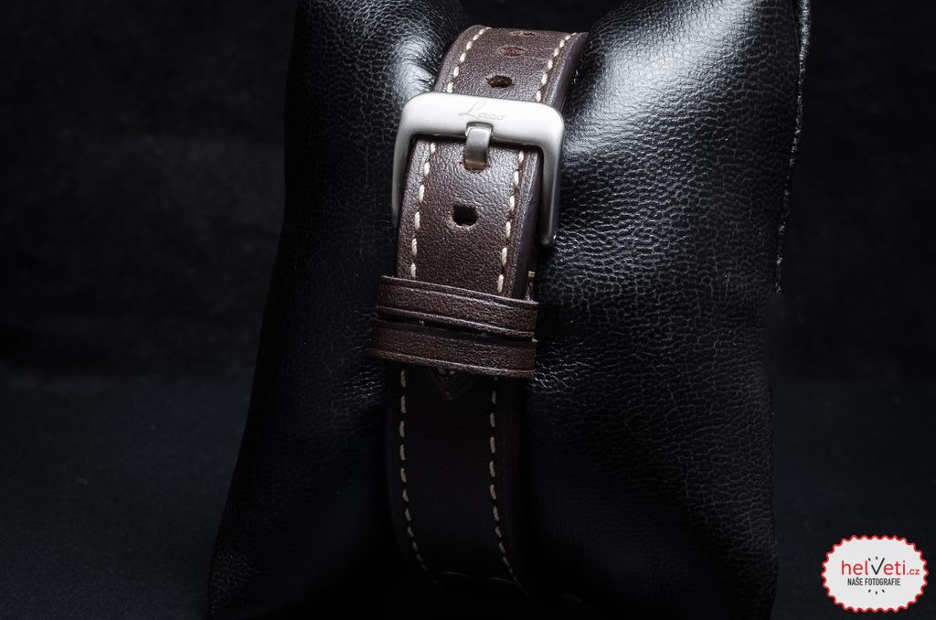 HodinkyLaco Heidelberg vychádzajú z pôvodných pilotných hodiniek používaných počas druhej svetovej vojny. Pieskované oceľové puzdro Laco Flieger Original Heidelberg s rovnými nožičkami dopĺňa hnedý kožený remienok s kontrastným prešívaním a výraznými nitmi. Na bočnej strane puzdra je označenie "FL23883", čo bolo klasifikačné číslo, ktoré sa nachádza aj na ciferníku spolu s číslom jednotky, výrobcom a označením mechanizmu. Na historických modeloch boli tieto informácie umiestnené na vnútornej strane dýky. Vodotesnosť týchto hodiniek je 100 m (10 ATM), takže zvládnu aj plávanie. Priemer puzdra je 39 mm, dĺžka (od ucha k uchu) je 46 mm, takže hodinky dobre sedia na väčšine pánskych zápästí.