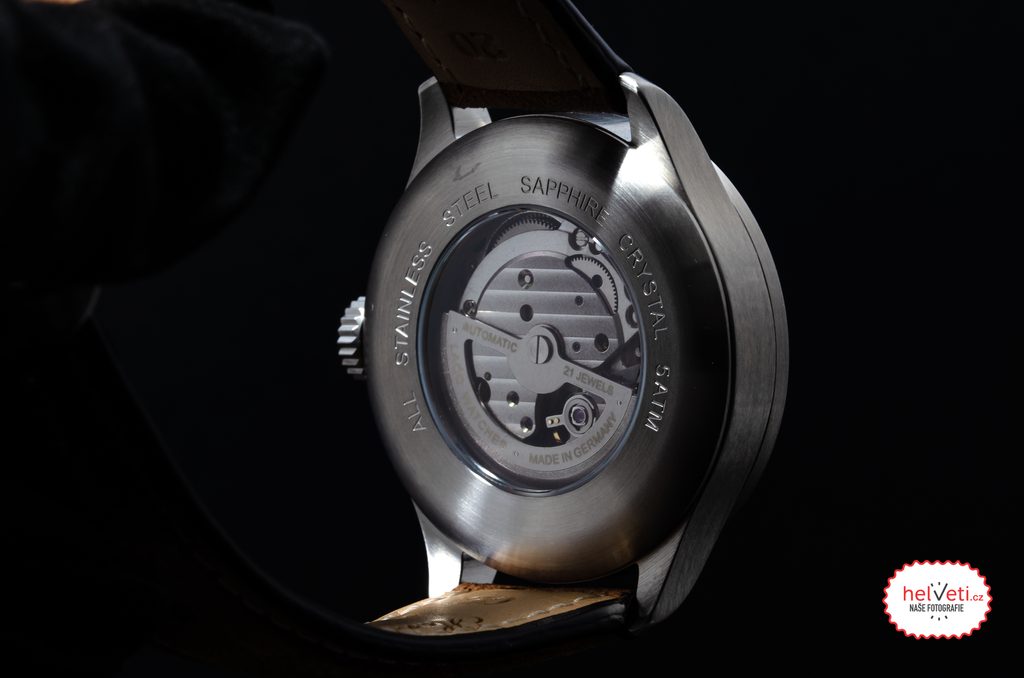Hodinky poháňa mechanický strojček Laco 21 so samonáťahom (základ Miyota 821A), ktorý ponúka rezervu chodu približne 42 hodín, funkciu stop-sekúnd pri nastavovaní času(hacking) a možnosť manuálneho naťahovania. Luminiscenčný ciferník poskytuje lepšiu čitateľnosť pri slabom osvetlení. Chráni ho zafírové sklíčko s vysokou odolnosťou proti poškriabaniu. Hodinky sú vybavené ukazovateľom dátumu na pozícii 6 hodín. Puzdro hodiniek je vyrobené z nehrdzavejúcej ocele a je doplnené hnedým koženým remienkom. Mnohých poteší možnosť pozorovať strojček cez priehľadné vieko so zafírovým sklíčkom. Vodotesnosť týchto hodiniek je 50 m (5 ATM), takže zvládnu kontakt s vodou pri umývaní rúk aj pri daždi. Priemer puzdra je 42 mm, dĺžka (od ucha k uchu) je 50 mm, takže hodinky dobre sedia na väčšine pánskych zápästí.