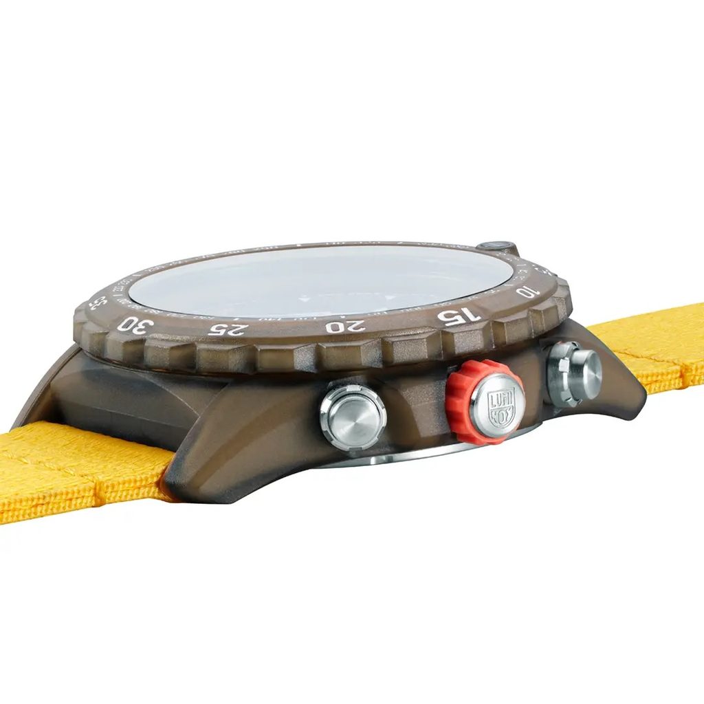 Puzdro modelu Luminox XB.3745.ECO je vyrobené z materiálu #Tide, ktorý zaisťuje potrebnú odolnosť a tiež ďalšiu príjemnú vlastnosť - nízku hmotnosť. Hodinky vážia iba 85 gramov. Hodinky disponujú vodotesnosťou 200m, vďaka čomu Vás môžu sprevádzať aj pri potápaní. Na tieto účely sa bezpochyby bude hodiť aj jednosmerne otočná luneta. Praktické využitie obstaráva ukazovateľ dátumu, umiestnený na pozícii šesť. Medzi ďalšie funkcie patria stopky. Najväčšou prednosťou hodiniek je však tríciová luminiscencia, ktorá zaistí čitateľnosť hodiniek v tme, bez akéhokoľvek nasvietenia, až na 25 rokov. Ide o veľmi dobrú voľbu v porovnaní ceny a "výkonu" hodiniek!