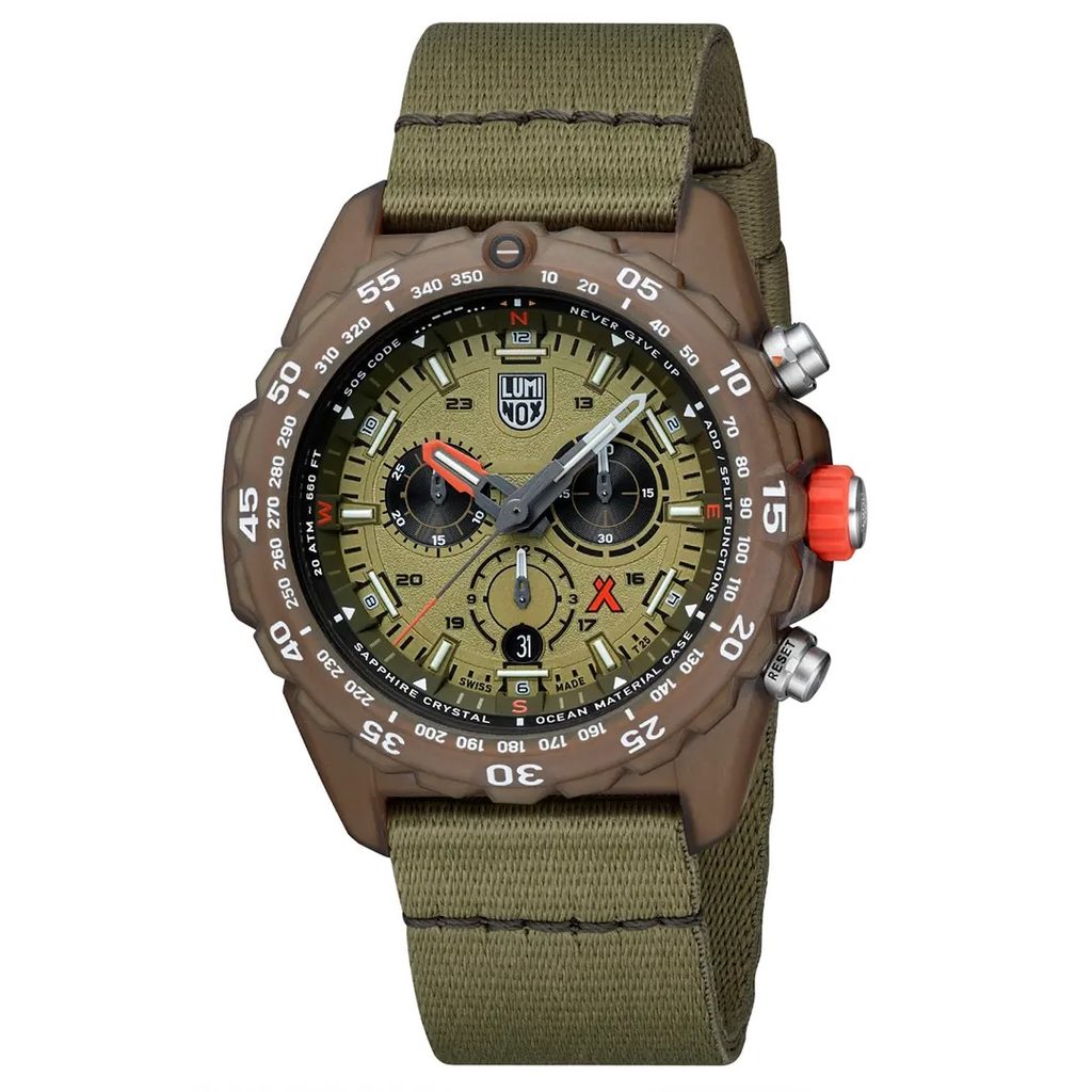 Puzdro modelu Luminox XB.3757.ECO je vyrobené z materiálu #Tide, ktorý zaisťuje potrebnú odolnosť a tiež ďalšiu príjemnú vlastnosť - nízku hmotnosť. Hodinky vážia iba 85 gramov. Hodinky disponujú vodotesnosťou 200m, vďaka čomu Vás môžu sprevádzať aj pri potápaní. Na tieto účely sa bezpochyby bude hodiť aj jednosmerne otočná luneta. Praktické využitie obstaráva ukazovateľ dátumu, umiestnený na pozícii šesť. Medzi ďalšie funkcie patria stopky. Najväčšou prednosťou hodiniek je však tríciová luminiscencia, ktorá zaistí čitateľnosť hodiniek v tme, bez akéhokoľvek nasvietenia, až na 25 rokov. Ide o veľmi dobrú voľbu v porovnaní ceny a "výkonu" hodiniek!
