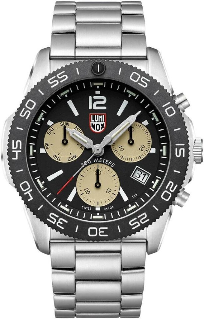 Hodinky Luminox Pacific Diver Chronograph 3140 Series XS.3150.M pochádzajú zo série SEA, kolekcie Pacific Diver a zaujmú odolným celooceľovým spracovaním. Tríciová luminiscencia LLT (Luminox Light Technology) zaručuje čitateľnosť hodiniek v tme až na 25 rokov.