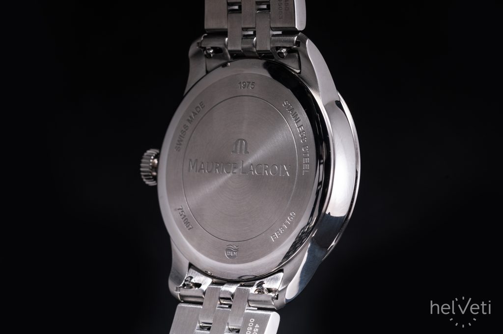 Hodinky Maurice Lacroix 1975 751007-SS002-330-1 majú puzdro vyrobené z ušľachtilej ocele, ktoré dopĺňa náramok z rovnakého materiálu. Vo vnútri puzdra spoľahlivo tiká švajčiarsky batériový strojček Ronda 515. Strojček má ukazovateľ dátumu, ktorý nájdete na pozícii šiestich hodín.