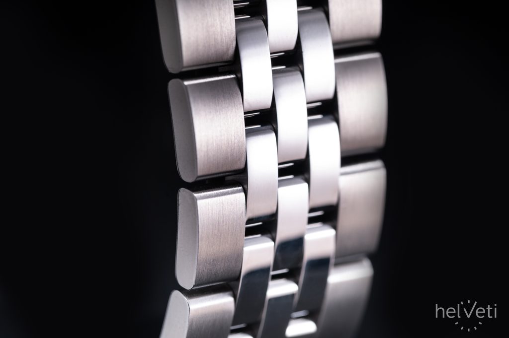 Čierny ciferník so slnečným efektom chráni zafírové sklíčko s obojstrannou antireflexnou vrstvou, ktoré je maximálne odolné proti poškriabaniu. Vodotesnosť tohto modelu je 100 m, takže zvládne bežný kontakt s vodou, ako je umývanie rúk, dážď, sprcha alebo aj povrchové plávanie.