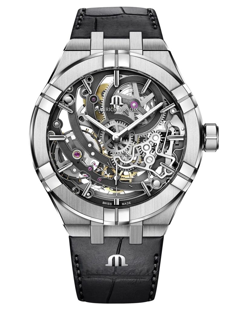 Pánske švajčiarske hodinky Maurice Lacroix Aikon Automatic Skeleton AI6028-SS001-030-1 sa vyznačujú neobvyklým a typickým tvarom puzdra. Tento model zaujme výrobným mechanizmom a dizajnom skeletového ciferníka.