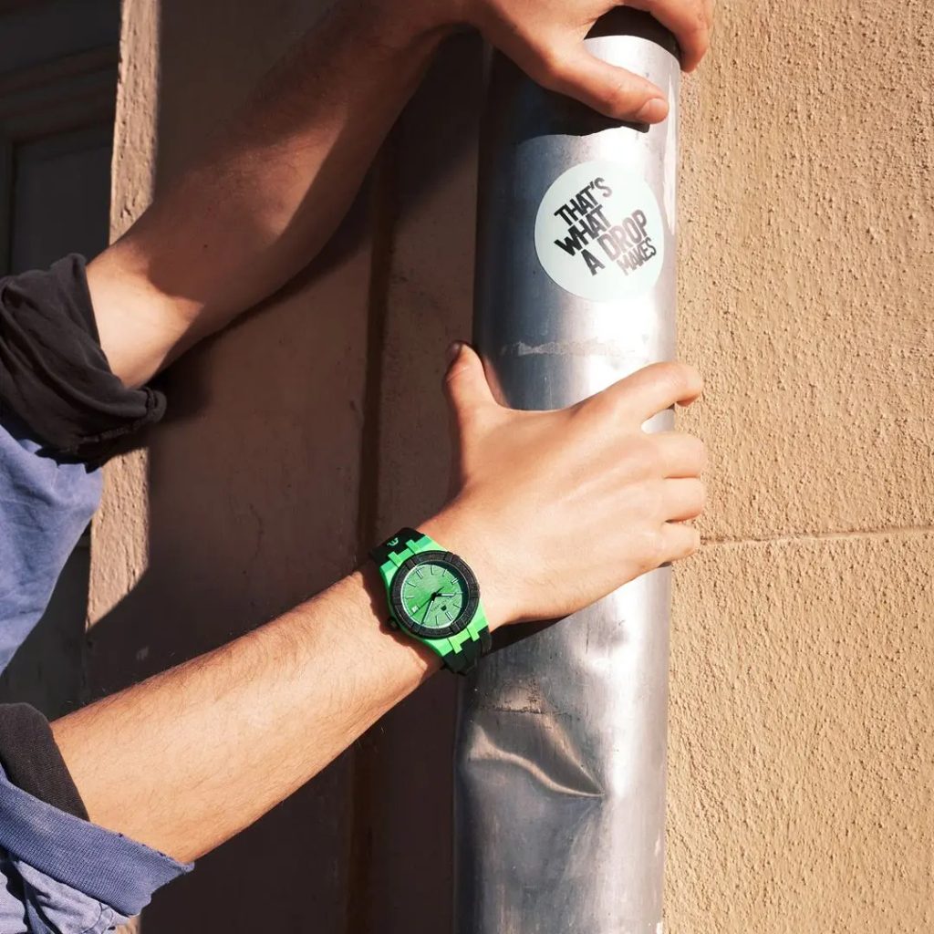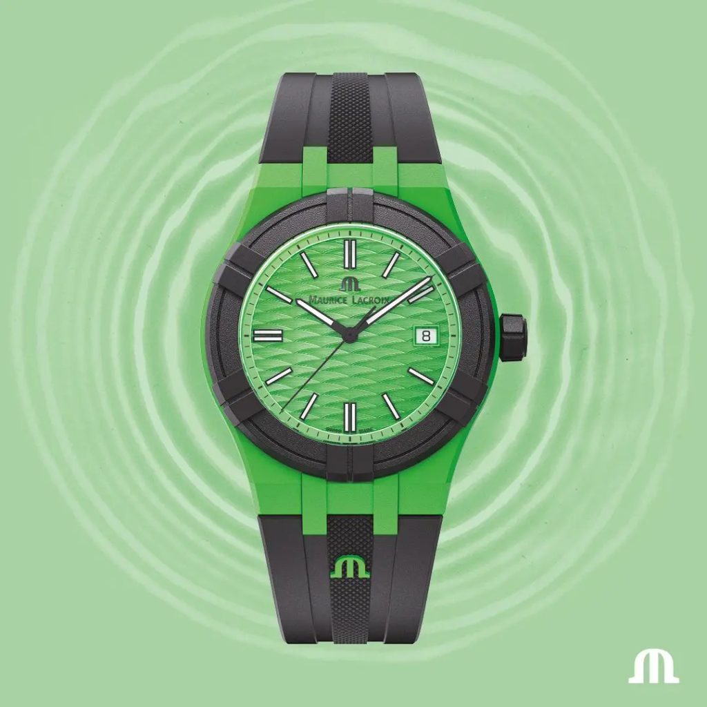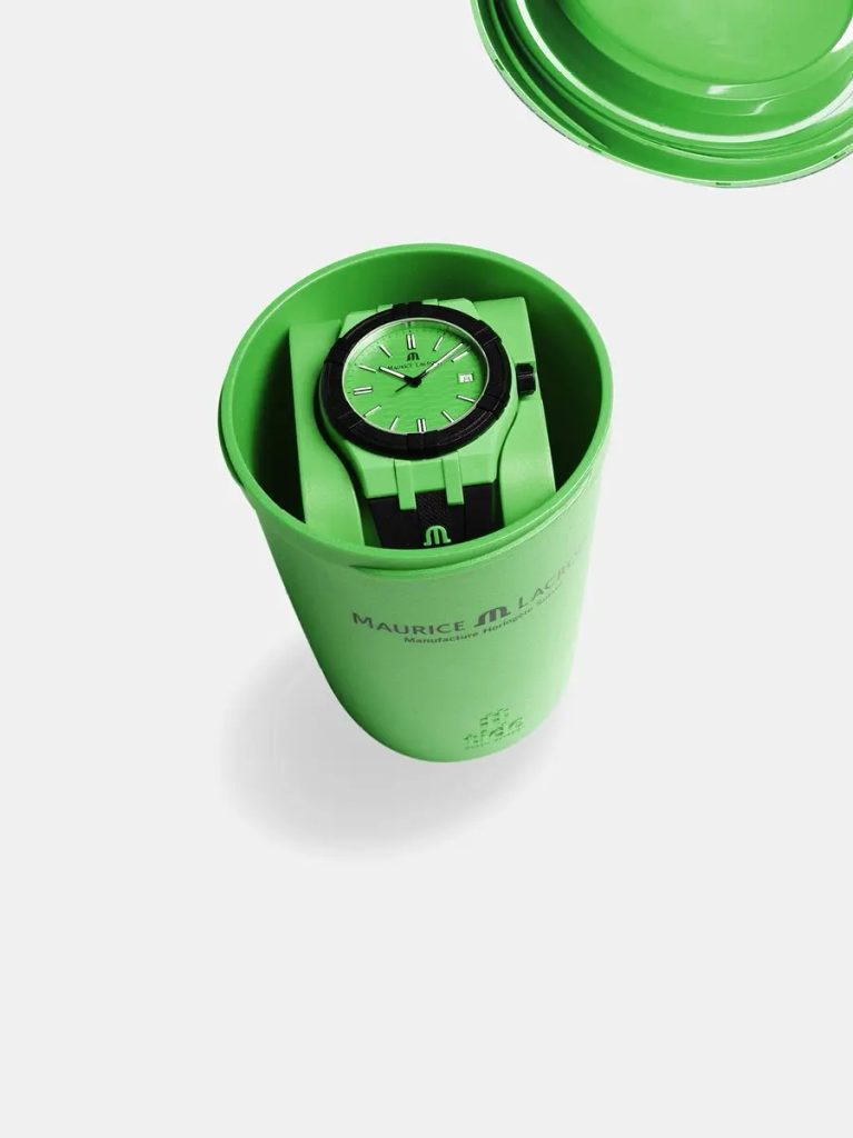 Hodinky Maurice Lacroix Aikon #tide AI2008-70070-300-0 majú puzdro vyrobené z kompozitného materiálu. Ide o upcyklovaný plast v kombinácii so sklenenými vláknami, ktoré sa získavajú z plastového odpadu v oceánoch. Výsledný kompozitný materiál je dvakrát tvrdší ako štandardný plast, päťkrát odolnejší a má výrazne menšiu uhlíkovú stopu. Na výrobu jedného modelu hodiniek a ich obalu, ktorý je zo 100 % vyrobený z materiálu #tide ocean®, je potrebných 17 fliaš.