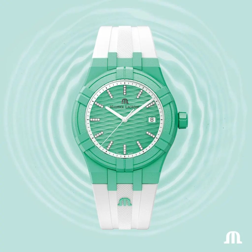 Hodinky Maurice Lacroix Aikon #tide AI2008-CCCC1-3A0-0 majú puzdro vyrobené z kompozitného materiálu. Ide o upcyklovaný plast v kombinácii so sklenenými vláknami, ktoré sa získavajú z plastového odpadu v oceánoch. Výsledný kompozitný materiál je dvakrát tvrdší ako štandardný plast, päťkrát odolnejší a má výrazne menšiu uhlíkovú stopu. Na výrobu jedného modelu hodiniek a ich obalu, ktorý je zo 100 % tvorený materiálom #tide ocean®, je potrebných 17 fliaš.