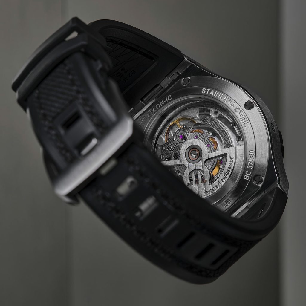 Hodinky Maurice Lacroix Aikonic Automatic Master Triple Retrograde 43mm AC6068-SSL20-230-2 majú puzdro z ušľachtilej ocele, ktoré dopĺňa čierny gumený remienok s tŕňovou sponou. Remienok má nový patentovaný systém rýchlej výmeny (ML Easy Change), ktorý nahrádza rýchloupínanie novým systémom zacvakávania. Luneta okolo sklíčka je vyrobená z keramiky v čiernej farbe.