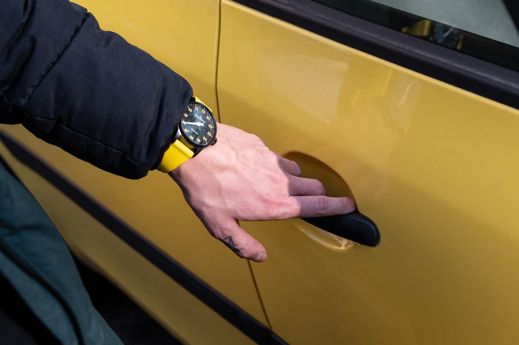 Drsný, sopečný povrch ciferníka kontrastuje s hladkým vonkajším okrajom. Dvojmiestne číslice sú nepochybne najvýraznejším prvkom v dizajne hodiniek, a to aj preto, že svietia žltou farbou - aj v noci. Spolu s hodinovými značkami a širokou robustnou ručičkou, ktorá v tme jasne svieti, je zaručená optimálna čitateľnosť.