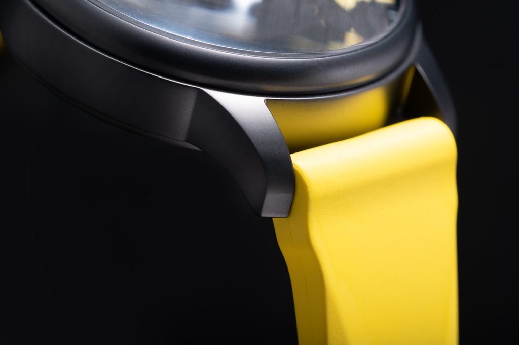Tieto hodinky z edície Black One odštartujú nový rok svojím výrazným dizajnom. Celkový vzhľad dotvára robustný žltý gumový remienok so šírkou 20 mm, ktorý farebne ladí s číslicami a podčiarkuje športový, dynamický vzhľad hodiniek. Pre tých, ktorí uprednostňujú diskrétnejší vzhľad, je alternatívne k dispozícii čierny gumový remienok.