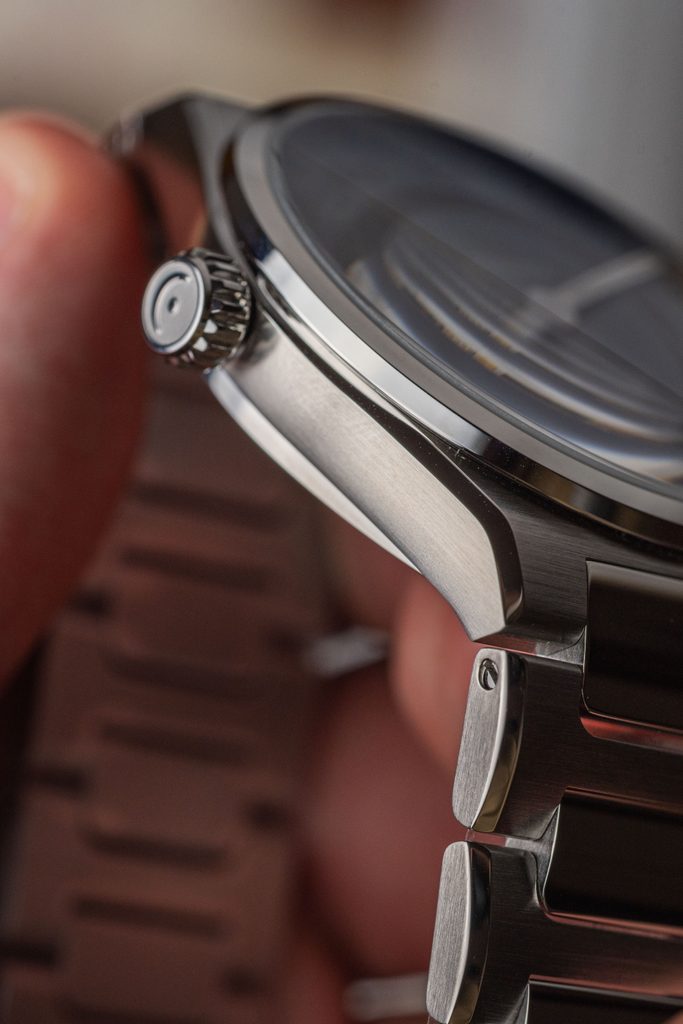 Puzdro hodiniek s priemerom 40 mm je vyrobené z nehrdzavejúcej ocele a kombinuje čiastočne leštené a čiastočne brúsené povrchy, čo dodáva ich telu mimoriadne elegantný a živý vzhľad.