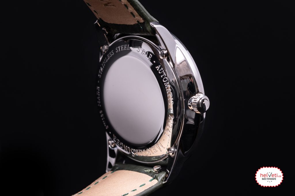 Ciferník v slonovinovej kosti, rovnako ako celý model, má ľahký retro nádych. Oceníte najmä jeho vynikajúce spracovanie, skvelú čitateľnosť a ľahkú orientáciu, ako aj to, že ho neruší okienko s dátumovkou. Aj keď sa čas zobrazuje len jednou ručičkou, môžete sa spoľahnúť na typickú minútovú stupnicu, ktorá je dokonale prehľadná.