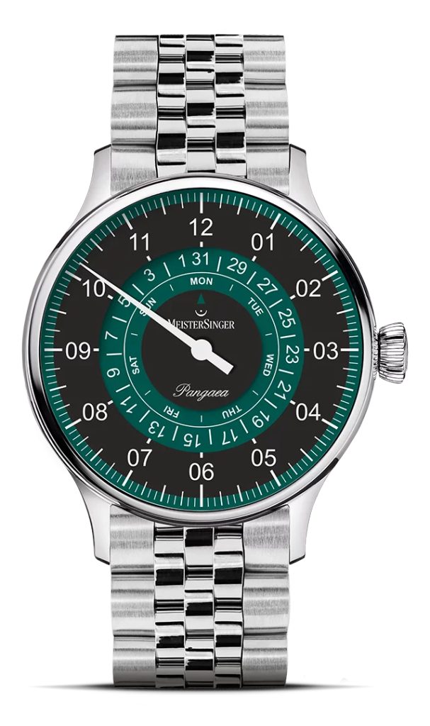 Hodinky MeisterSinger Pangaea Day Date PDD902P patria do série Classic Plus a ponúkajú netradičné, ale o to zaujímavejšie zobrazenie času pomocou jednej ručičky. Hlavným prvkom tohto modelu je ukazovateľ dňa a dátumu, zobrazený pomocou kotúčikov v strede ciferníka. Fanúšikovia kvalitnej hodinárskej výroby a netradičných riešení si preto určite prídu na svoje.