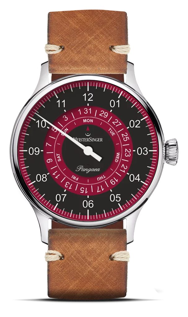 Hodinky MeisterSinger Pangaea Day Date PDD902R patria do série Classic Plus a ponúkajú netradičné, ale o to zaujímavejšie zobrazenie času pomocou jednej ručičky. Hlavným prvkom tohto modelu je ukazovateľ dňa a dátumu, zobrazený pomocou kotúčikov v strede ciferníka. Fanúšikovia kvalitnej hodinárskej výroby a netradičných riešení si preto určite prídu na svoje.