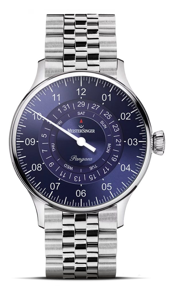 Hodiny MeisterSinger Pangaea Day Date PDD908 patria do série Classic Plus a ponúkajú netradičné, ale o to zaujímavejšie zobrazenie času pomocou jednej ručičky. Hlavnou črtou tohto modelu je zobrazenie dňa a dátumu, zobrazené pomocou kotúčikov v strede ciferníka. Fanúšikovia kvalitného hodinárstva a netradičných riešení si preto určite prídu na svoje.