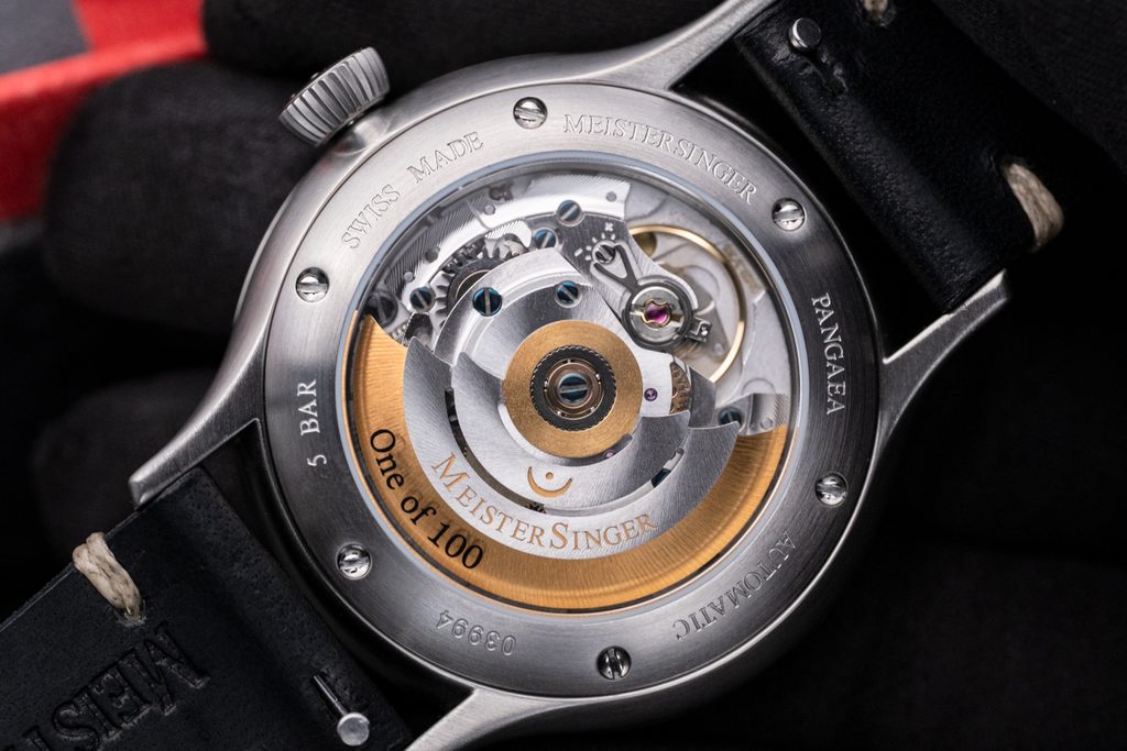 Puzdro hodiniek MeisterSinger Pangaea Day Date S-PDD9Z25 je vyrobené z ušľachtilej ocele a v jeho vnútri tiká švajčiarsky mechanický strojček , samonáťah Sellita SW 220-1. Tento ozdobný strojček, pracujúci s frekvenciou 28 800 polofrekvencií za hodinu, možno pozorovať vďaka priehľadnému ciferníku. Ukazovateľ dátumu a dňa v týždni možno čítať na pozícii 12, ktorú zobrazuje dvojica odkrytých kotúčov v strede ciferníka. Ciferník, rovnako ako celý model, má ľahký retro nádych a, samozrejme, spracovanie je vynikajúce. Vďaka typickej minútovej stupnici sa môžete spoľahnúť na dokonalú prehľadnosť, aj keď sa čas zobrazuje len jednou ručičkou.
