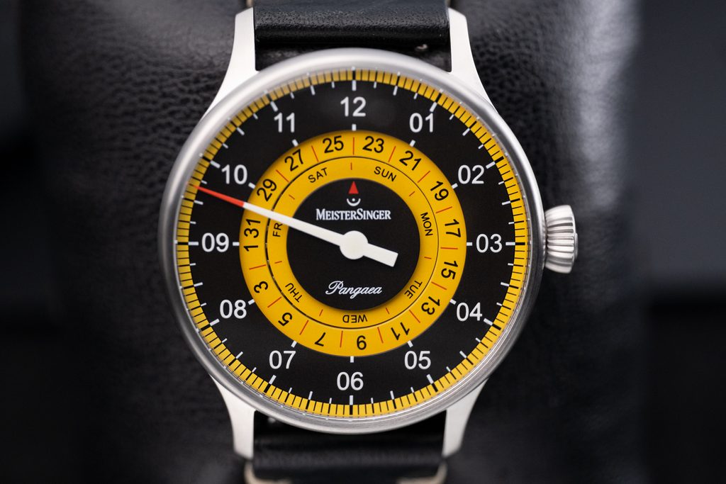 Hodiny MeisterSinger Pangaea Day Date S-PDD9Z25 patria do série Classic Plus a ponúkajú netradičné, ale o to zaujímavejšie zobrazenie času pomocou jednej ručičky. Hlavným znakom tohto modelu je zobrazenie dňa a dátumu, ktoré sú zobrazené pomocou kotúčikov v strede ciferníka. Fanúšikovia kvalitného hodinárstva a netradičných riešení si preto určite prídu na svoje.