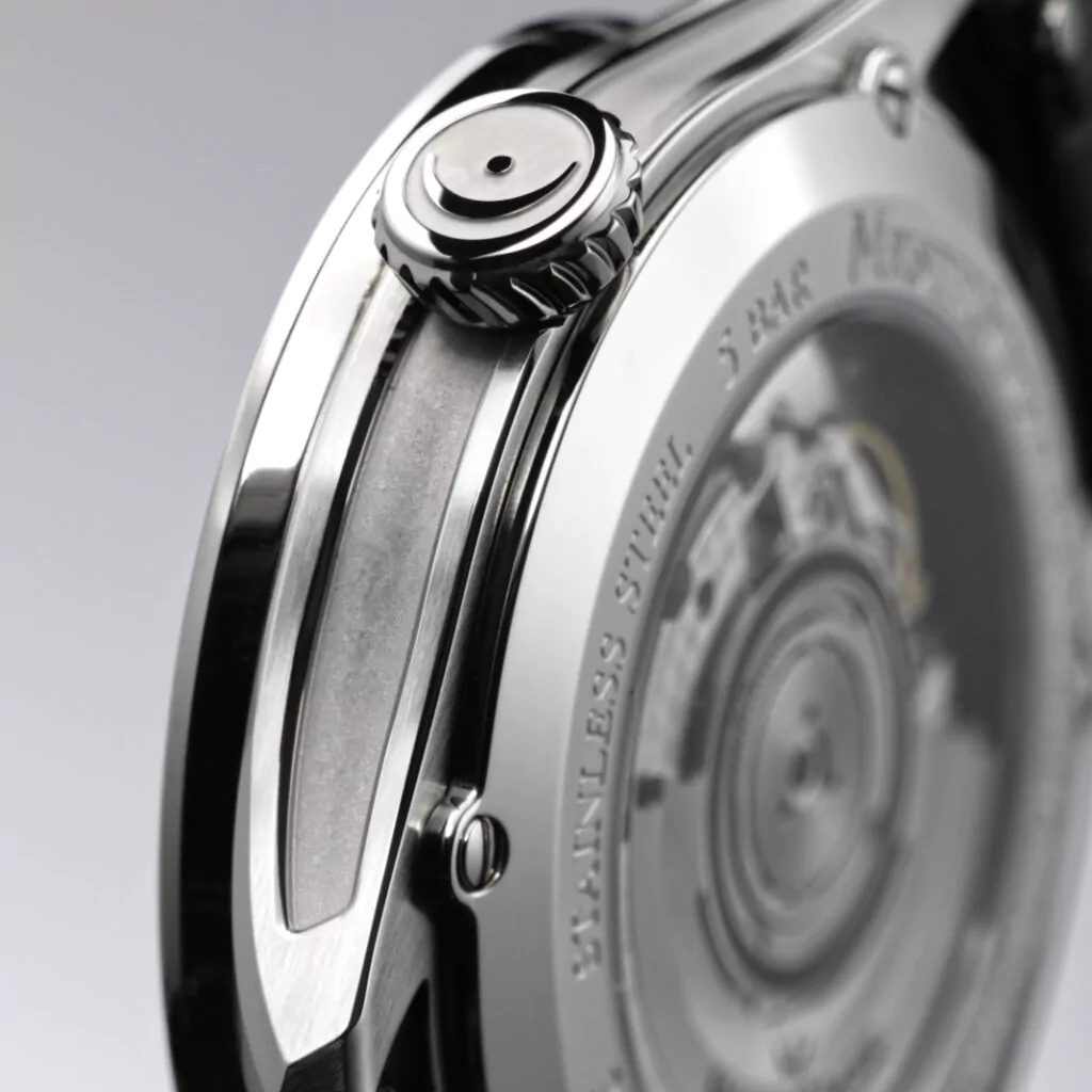 Puzdro s priemerom 40,5 mm je vyrobené z ušľachtilej ocele v kombinácii leštenej a brúsenej povrchovej úpravy. Zaujímavým detailom sú vyfrézované boky puzdra s hlbokými priehlbinami. Za zmienku stojí aj novo navrhnutá korunka odrážajúca dokonalú symetriu puzdra.