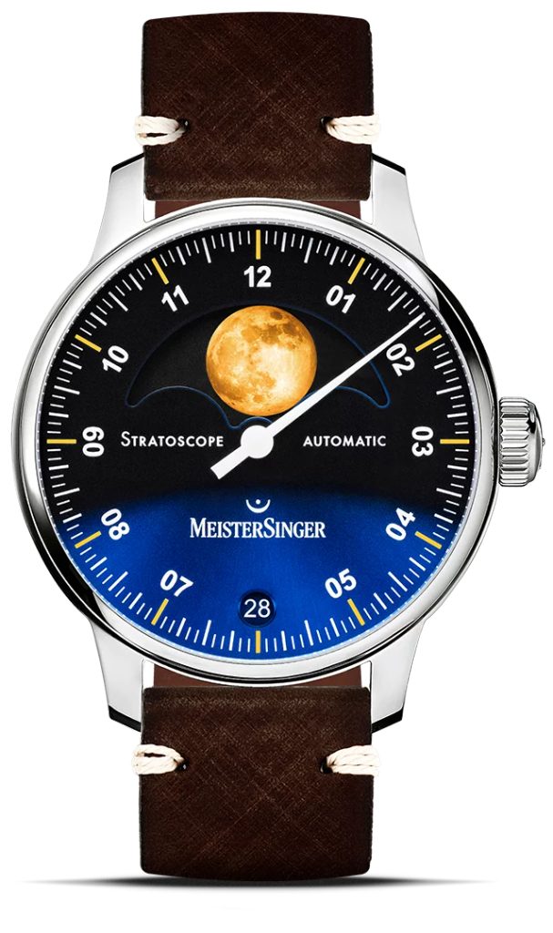 Hodinky MeisterSinger Stratoscope ST982G sú súčasťou série hodiniek Meisterstücke a ponúkajú nezvyčajné, ale o to zaujímavejšie zobrazenie času pomocou jednej ručičky. Hlavným znakom tohto modelu je komplikácia fázy mesiaca. Fanúšikovia kvalitného hodinového stroja a netradičných riešení si preto určite prídu na svoje.
