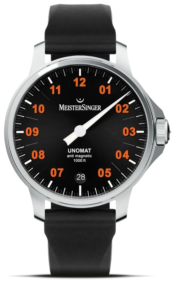 Matný ciferník hodiniek Unomat vyniká kontrastnými indexmi a číslicami vo farbe remienka. Pri pohľade z diaľky je jasne rozpoznateľný. Dvojmiestne číslice hodiniek pozostávajú z trojrozmerných prvkov s luminiscenčnou vrstvou. Počas dňa vyniknú svojím nezameniteľným oranžovým odtieňom na pozadí čierneho ciferníka a v noci svietia obzvlášť intenzívne, pretože sú hrubšie a môžu pohlcovať a vyžarovať svetlo zo strán.