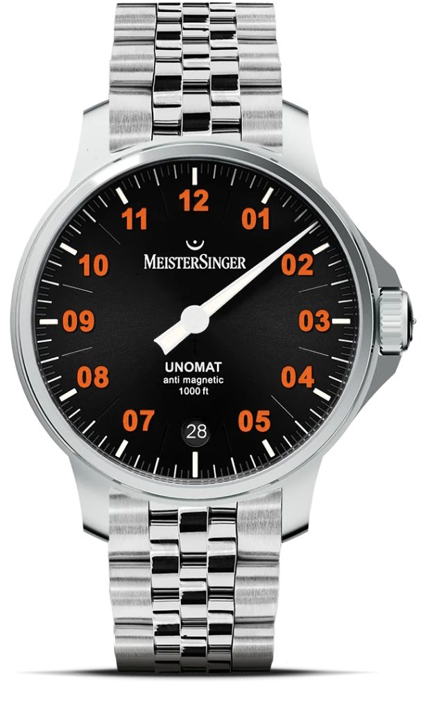 Puzdro hodiniek MeisterSinger Unomat UN902OLU je vyrobené z ušľachtilej ocele. Vo vnútri hodiniek tiká švajčiarsky samonáťah Sellita SW400, ktorý je obklopený vrstvami mäkkého železa, vďaka čomu je odolný voči všadeprítomnému magnetickému poľu.