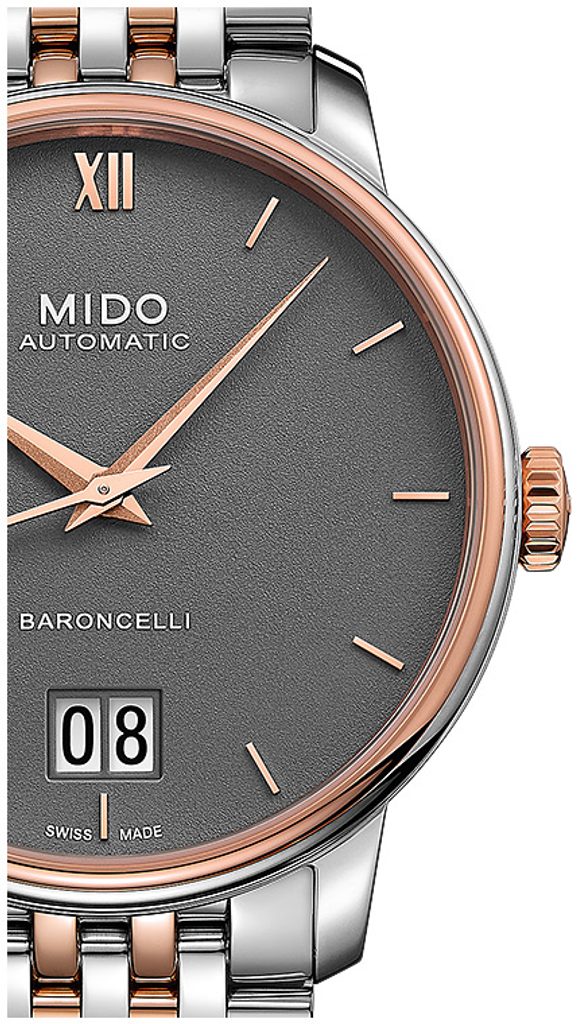 Hodinky Mido M027.426.22.088.00 majú puzdro vrátane náramku vyrobené z nehrdzavejúcej ocele 316L s čiastočnou PVD úpravou v ružovom zlate. Vo vnútri spoľahlivo tiká švajčiarsky mechanický strojček Mido Caliber 80 Big Date (na báze ETA C07.651) s automatickým naťahovaním. Pracuje pri frekvencii 21 600 polfrekvencií za hodinu, má 25 drahokamov a predovšetkým predĺženú rezervu chodu na 80 hodín. Činnosť tohto stroja možno sledovať cez priehľadný volič. Na pozícii 6 hodín sa nachádza praktický veľký ukazovateľ dátumu - takzvaný Big Date.