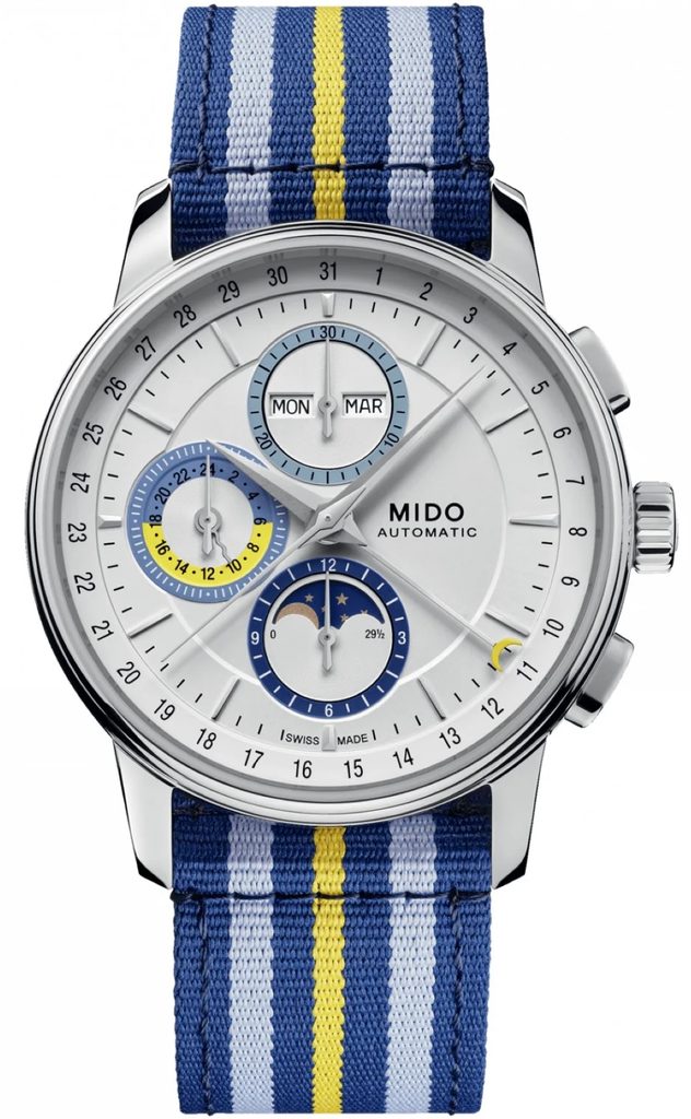 Hodinky Mido M027.625.17.031.00 majú puzdro vyrobené z ušľachtilej ocele 316L, ktoré vkusne dopĺňa nylonový remienok NATO. Vnútri puzdra spoľahlivo tiká švajčiarsky mechanický strojček Mido Caliber 60 (na báze ETA A05.221) s automatickým naťahovaním. Pracuje s frekvenciou 28 800 polfrekvencií za hodinu, má 27 drahokamov a predovšetkým predĺženú rezervu chodu na 60 hodín. Činnosť tohto strojčeka možno sledovať cez priehľadný ciferník. Na pozícii 12 hodín nájdeme praktický ukazovateľ dňa v týždni a ukazovateľ mesiaca. Na meranie časových úsekov možno použiť stopky , ktorých minútové počítadlo sa nachádza v subciferníku na pozícii 12 hodín a hodinové počítadlo na pozícii 6 hodín. Subciferník na pozícii 9 hodín potom patrí 24-hodinovej ručičke (indikácia dňa a noci) a mimostredovej sekundovej ručičke. Ukazovateľ dátumu obsluhuje centrálna ručička, ktorá zobrazuje dátum na stupnici na okraji ciferníka.