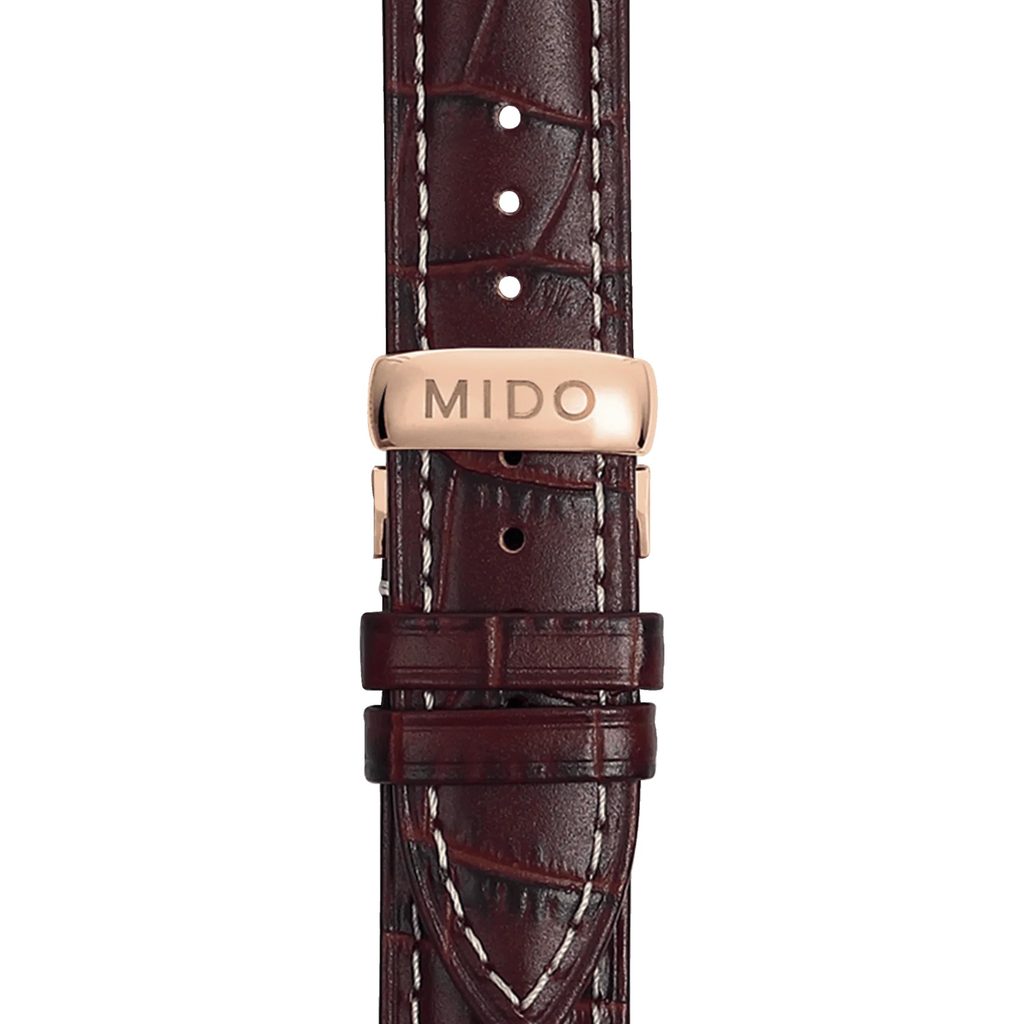 Hodinky Mido M8600.2.21.8 majú puzdro z nehrdzavejúcej ocele 316L s povrchovou úpravou ružovým zlatom PVD, ktoré vhodne dopĺňa kožený remienok. V puzdre spoľahlivo tiká švajčiarsky mechanický strojček Mido Caliber 80 (na báze ETA C07.611) s automatickým naťahovaním. Pracuje pri frekvencii 21 600 polfrekvencií za hodinu, má 25 drahokamov a predovšetkým predĺženú rezervu chodu na 80 hodín. Činnosť tohto stroja možno pozorovať cez priehľadnú matricu. Na pozícii 4-5 hodín sa nachádza praktický ukazovateľ dátumu.