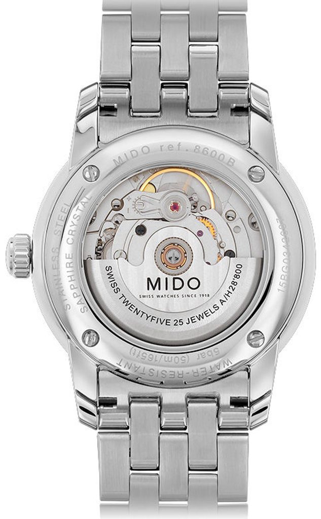 Hodinky Mido M8600.4.18.1 majú puzdro vrátane náramku vyrobené z nehrdzavejúcej ocele 316L. Vnútri puzdra spoľahlivo tiká švajčiarsky mechanický strojček Mido Caliber 80 (na báze ETA C07.611) s automatickým naťahovaním. Pracuje pri frekvencii 21 600 polfrekvencií za hodinu, má 25 drahokamov a predovšetkým predĺženú rezervu chodu na 80 hodín. Činnosť tohto stroja možno pozorovať cez priehľadnú matricu. Na pozícii 4-5 hodín sa nachádza praktický ukazovateľ dátumu.