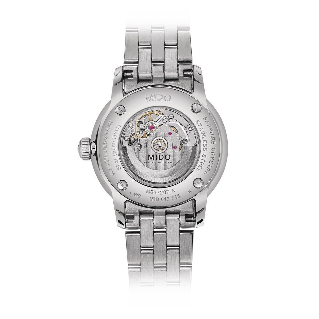 Hodinky Mido M037.207.11.031.00 majú puzdro vrátane náramku vyrobené z ušľachtilej ocele 316L. Vo vnútri spoľahlivo tiká švajčiarsky mechanický strojček Mido Caliber 48 (na báze ETA C26.111) s automatickým naťahovaním. Pracuje s frekvenciou 28 800 polfrekvencií za hodinu, má 24 drahokamov a rezervu chodu 48 hodín. Činnosť tohto stroja možno sledovať cez priehľadný volič. Na pozícii 3 hodín sa nachádza praktický ukazovateľ dátumu.