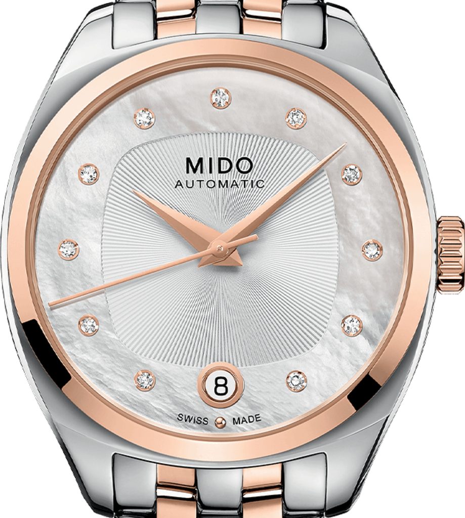 Hodinky Mido M024.307.22.116.00 majú puzdro vrátane náramku vyrobené z nehrdzavejúcej ocele 316L s čiastočnou PVD úpravou v ružovom zlate. Švajčiarsky mechanický strojček Mido Caliber 80 (na báze ETA C07.611) s automatickým naťahovaním spoľahlivo tiká v puzdre. Pracuje pri frekvencii 21 600 polfrekvencií za hodinu, má 25 drahokamov a predovšetkým predĺženú rezervu chodu na 80 hodín. Činnosť tohto stroja možno pozorovať cez priehľadnú matricu. Na pozícii 6 hodín sa nachádza praktický ukazovateľ dátumu.