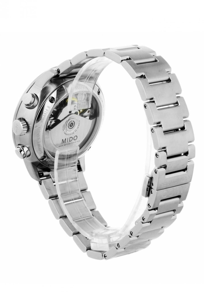 Hodinky Mido M016.414.11.041.00 majú puzdro a náramok z nehrdzavejúcej ocele 316L. Švajčiarsky mechanický strojček Caliber 60 (založený na strojčeku ETA A05H21, ktorý vychádza z mechanizmu Valjoux 7750) s automatickým naťahovaním spoľahlivo tiká. Pracuje pri frekvencii 28 800 polfrekvencií za hodinu, má 27 drahokamov a predovšetkým predĺženú rezervu chodu na 60 hodín. Činnosť tohto mechanizmu možno sledovať cez priehľadný ciferník. Na pozícii 3 hodín sa nachádza praktický ukazovateľ dátumu a dňa v týždni. Na meranie časových úsekov možno použiť stopky. Po obvode ciferníka sa nachádza tachymetrická stupnica, ktorá slúži na meranie priemernej rýchlosti za presne definované obdobie.