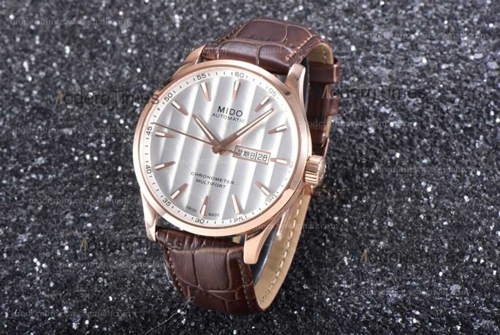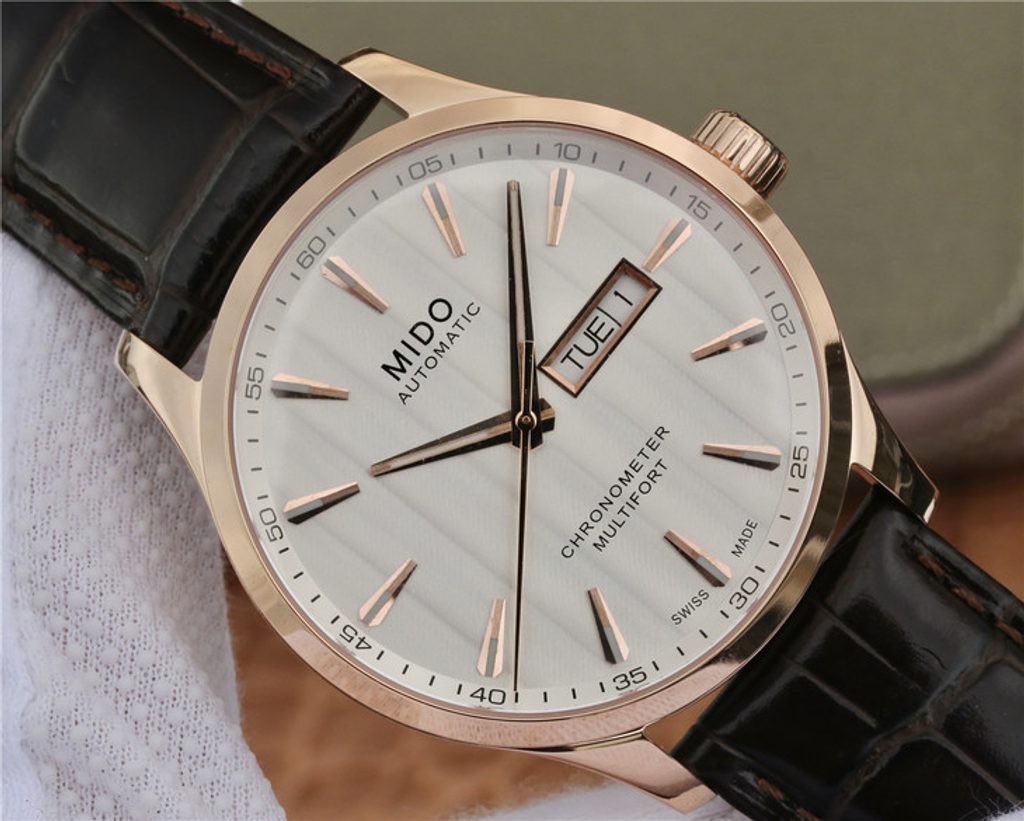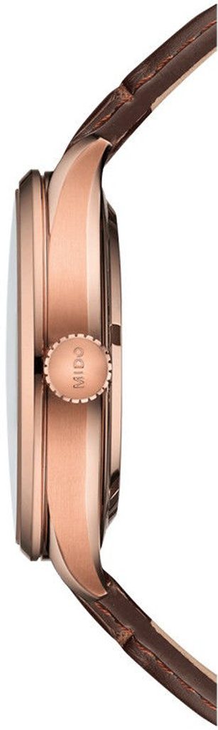 Hodinky Mido M038.431.36.031.00 majú puzdro z nehrdzavejúcej ocele 316L s povrchovou úpravou ružovým zlatom PVD, ktoré je doplnené koženým remienkom. Puzdro spoľahlivo tiká švajčiarskym mechanickým strojčekom Mido Caliber 80 COSC Silicon (na báze ETA C07.821) s automatickým naťahovaním. Pracuje pri frekvencii 21 600 polfrekvencií za hodinu, má 25 drahokamov a predovšetkým predĺženú rezervu chodu na 80 hodín. Stroj je certifikovaný COSC. Vďaka tomu môže niesť označenie "Chronometer" a spĺňa najprísnejšie požiadavky na presnosť chodu. Okrem toho má zotrvačník silikónový vlásenkový valec, ktorý okrem iných jedinečných vlastností (napr. lepšej presnosti) veľmi dobre odoláva magnetickým poliam. Činnosť tohto stroja možno pozorovať cez priehľadnú matricu. Na pozícii 3 hodín sa nachádza praktický ukazovateľ dátumu a dňa v týždni.