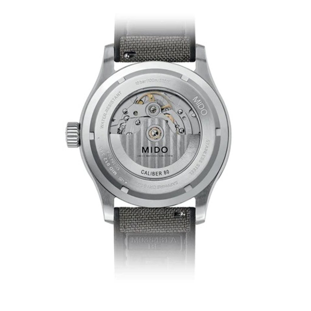 Hodinky Mido M038.430.17.081.00 majú puzdro vyrobené z ušľachtilej ocele 316L, ktoré dopĺňa nylonovo-gumový remienok. V puzdre spoľahlivo tiká švajčiarsky mechanický strojček Mido Caliber 80 COSC Silicon (na báze ETA C07.621) s automatickým náťahom. Pracuje s frekvenciou 21 600 polfrekvencií za hodinu, má 25 drahokamov a predovšetkým predĺženú rezervu chodu na 80 hodín. Činnosť tohto strojčeka možno pozorovať cez priehľadnú matricu. Na pozícii 3 hodín nájdeme praktický ukazovateľ dátumu a dňa v týždni.