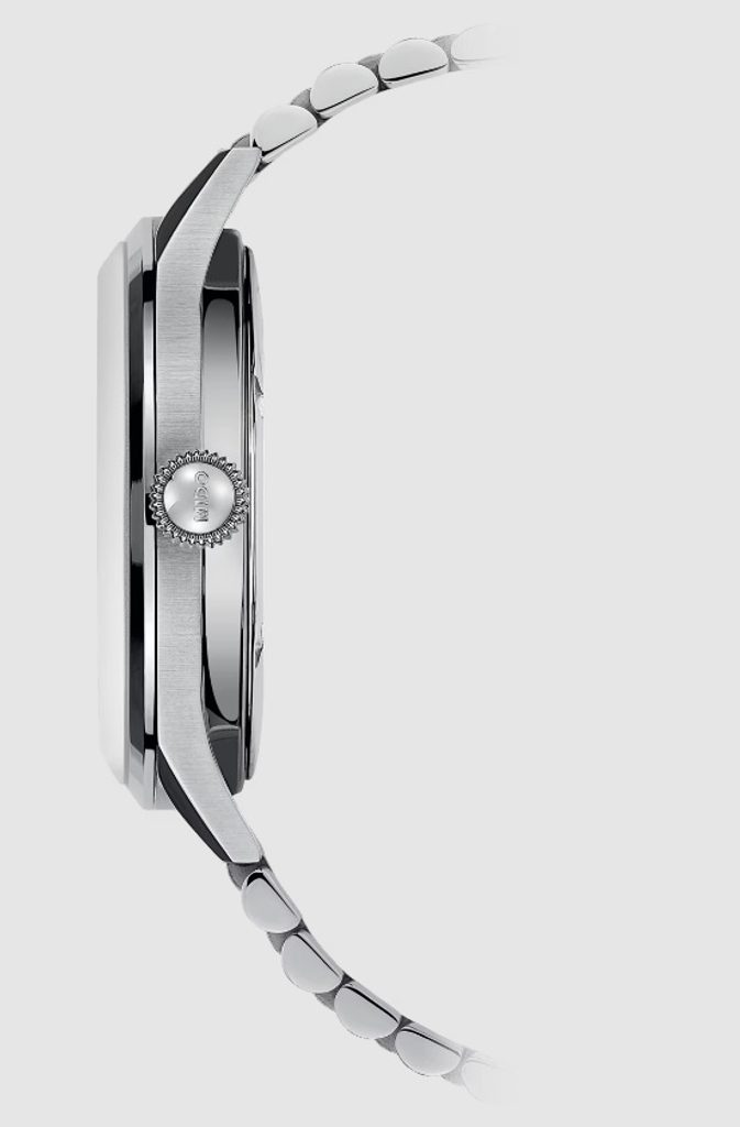 Priehľadný ciferník je chránený zafírovým sklíčkom, ktoré zaručuje maximálnu odolnosť voči poškriabaniu. Vodotesnosť tohto modelu je 50 m (5 barov), takže zvládne základný kontakt s vodou, napríklad dážď alebo sprchu.