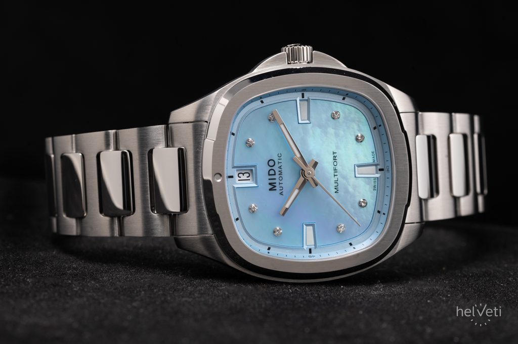 Švajčiarske hodinky Mido Multifort TV 35 M049.307.11.136.00 si získajú svojich majiteľov najmä nevšedným, ale univerzálnym vzhľadom a precíznym spracovaním. Sú skvelým spoločníkom najmä na každodenné nosenie, ale dobre poslúžia aj pri používaní v spoločnosti. Tento model bol vyrobený na počesť obľúbeného modelu z roku 2000. Rovnako ako súčasná verzia pripomína svojím tvarom televíznu obrazovku. "Televízny tvar" puzdra sa však na Mido objavil už v roku 1973 v rade Multi Star a tiež v roku 1980 v rade Commander.