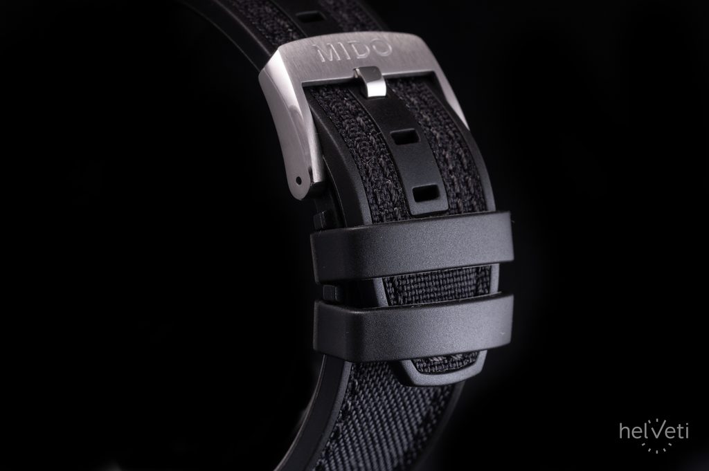 Hodinky Mido M049.526.17.081.01 majú puzdro vyrobené z nehrdzavejúcej ocele 316L a na zápästí ich drží nylonovo-gumový remienok. Remienok je vybavený rýchloupínacími prackami, a preto sa dá ľahko vymeniť bez pomoci náradia. V puzdre spoľahlivo tiká švajčiarsky mechanický strojček Caliber 80 Big Date (na báze ETA C07.651) s automatickým náťahom. Pracuje s frekvenciou 21 600 polfrekvencií za hodinu, má 25 drahokamov a predovšetkým predĺženú rezervu chodu na 80 hodín. Činnosť tohto strojčeka možno pozorovať cez priehľadný ciferník. Na pozícii 12 hodín nájdeme praktický veľký ukazovateľ dátumu - takzvaný Big Date.