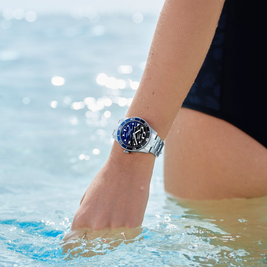 Prehľadný ciferník chráni zafírové sklíčko, ktoré zaručuje maximálnu odolnosť proti poškriabaniu. Obojstranná antireflexná vrstva potom zaisťuje maximálnu čitateľnosť aj pri jasnom slnečnom svetle. Vodotesnosť tohto modelu je 200 m (20 barov), takže bez problémov zvládne vodné aktivity, ako je plávanie alebo potápanie. Vodotesnosť podporuje skrutkovacia korunka.