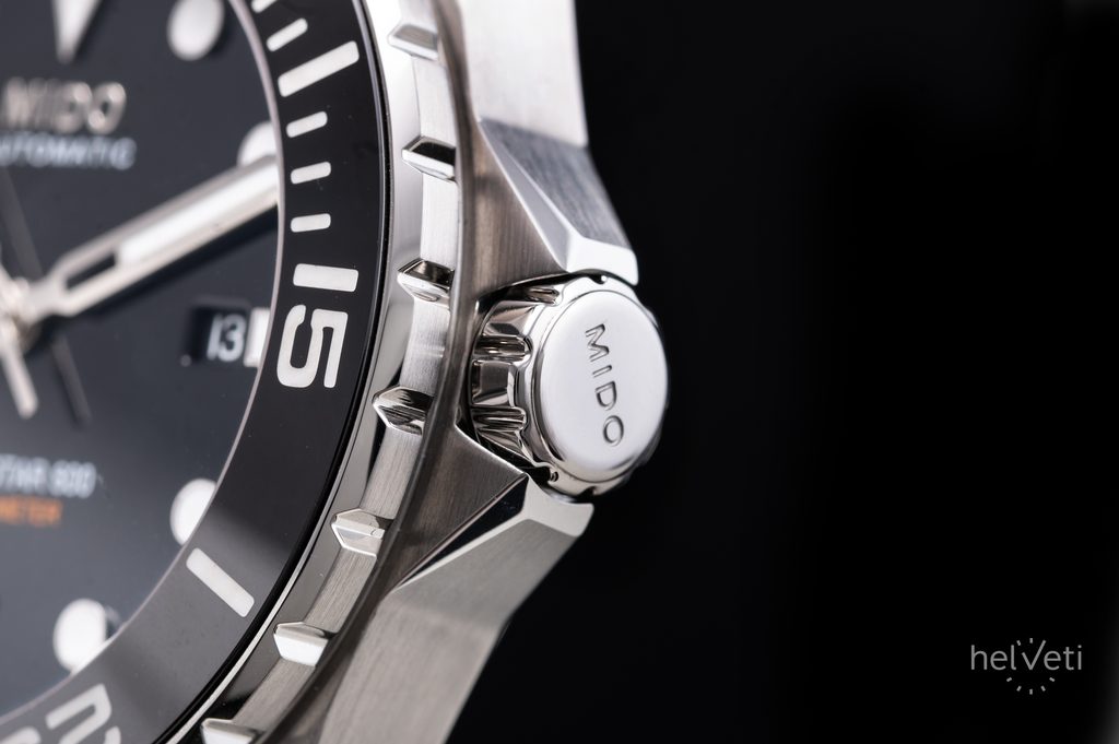 Hodinky Mido M026.608.11.051.00 majú puzdro a náramok z nehrdzavejúcej ocele 316L a poháňa ich švajčiarsky mechanický strojček Caliber 80 COSC Silicon (na báze ETA C07.821) s automatickým naťahovaním. Pracuje pri frekvencii 21 600 polfrekvencií za hodinu, má 25 drahokamov a predovšetkým predĺženú rezervu chodu na 80 hodín. Stroj je certifikovaný COSC. Vďaka tomu môže niesť označenie "Chronometer" a spĺňa najprísnejšie požiadavky na presnosť chodu. Okrem toho má zotrvačník silikónový vlásenkový valec, ktorý okrem iných jedinečných vlastností (napr. lepšej presnosti) veľmi dobre odoláva magnetickým poliam. Na pozícii 3 hodín sa nachádza praktický ukazovateľ dátumu. Na meranie časových úsekov možno použiť jednosmerne otočnú keramickú potápačskú lunetu.
