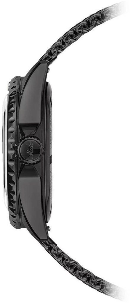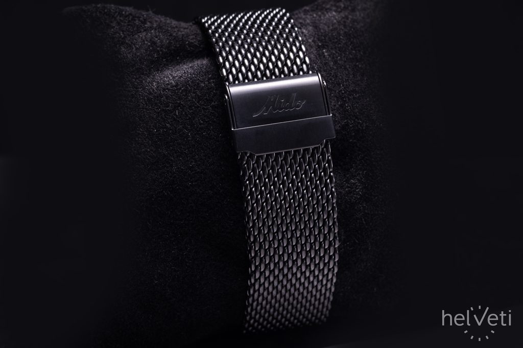 Hodinky Mido M026.807.33.051.00 majú puzdro vyrobené z nehrdzavejúcej ocele 316L s čiernou PVD úpravou, ktoré dopĺňa oceľový sieťovaný náramok, tiež s čiernou PVD úpravou. Súčasťou balenia je ajprídavný gumový a kožený remienok. Remienky aj kovová spona sú vybavené rýchloupínacím mechanizmom, takže ich možno ľahko vymeniť bez použitia náradia. V puzdre spoľahlivo tiká švajčiarsky mechanický strojček Caliber 80 (na báze ETA C07.621) s automatickým náťahom. Pracuje s frekvenciou 21 600 polfrekvencií za hodinu, má 25 drahokamov a predovšetkým predĺženú rezervu chodu na 80 hodín. Na pozícii 3 hodín nájdeme praktický ukazovateľ dátumu a dňa v týždni. Najvýraznejším prvkom na ciferníku je dekompresná stupnica, ktorá slúži na určenie času dekompresie počas potápania. Na meranie časových úsekov možno použiť jednosmerne otočnú potápačskú lunetu.