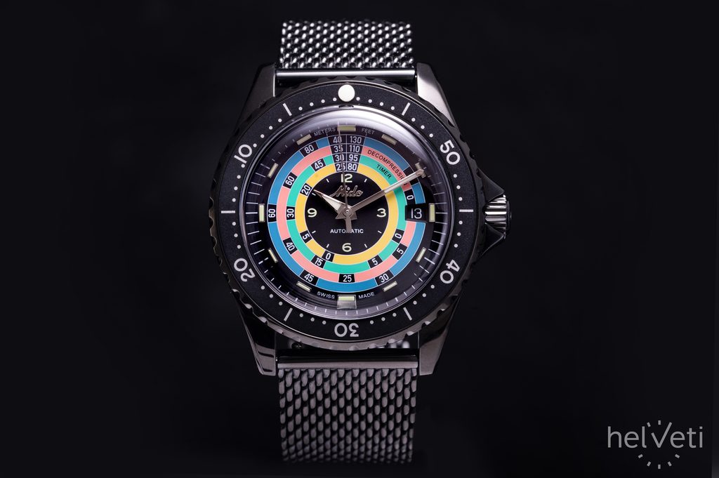 Prehľadný ciferník, ktorému dominuje dekompresná stupnica, je chránený zafírovým sklíčkom, ktoré zaručuje maximálnu odolnosť proti poškriabaniu. Vodotesnosť tohto modelu je 200 m (20 barov), takže bez problémov zvládne vodné aktivity, ako je plávanie alebo potápanie. Vodotesnosť podporuje skrutkovacia korunka.