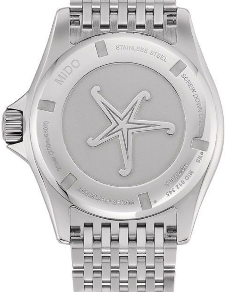 Hodinky Mido M026.830.11.051.00 majú puzdro vrátane náramku vyrobené z ušľachtilej ocele 316L. V puzdre spoľahlivo tiká švajčiarsky mechanický strojček Caliber 80 (základom je ETA C07.621) s automatickým náťahom. Ten pracuje na frekvencii 21600 polokmitov za hodinu, disponuje 25 kameňmi a predovšetkým predĺženou rezervou chodu 80 hodín. Na pozícii 3. hodiny nájdeme praktický ukazovateľ dátumu a dňa v týždni. Na meranie časových úsekov je možné využiť jednosmerne otočnú potápačskú lunetu. Súčasťou balenia je aj kožený remienok navyše.